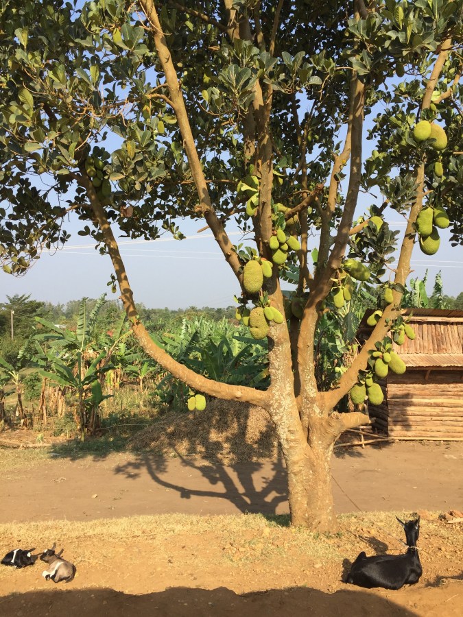 Jackfruit tree, goats, Kisoro, road to Queen Elizabeth NP