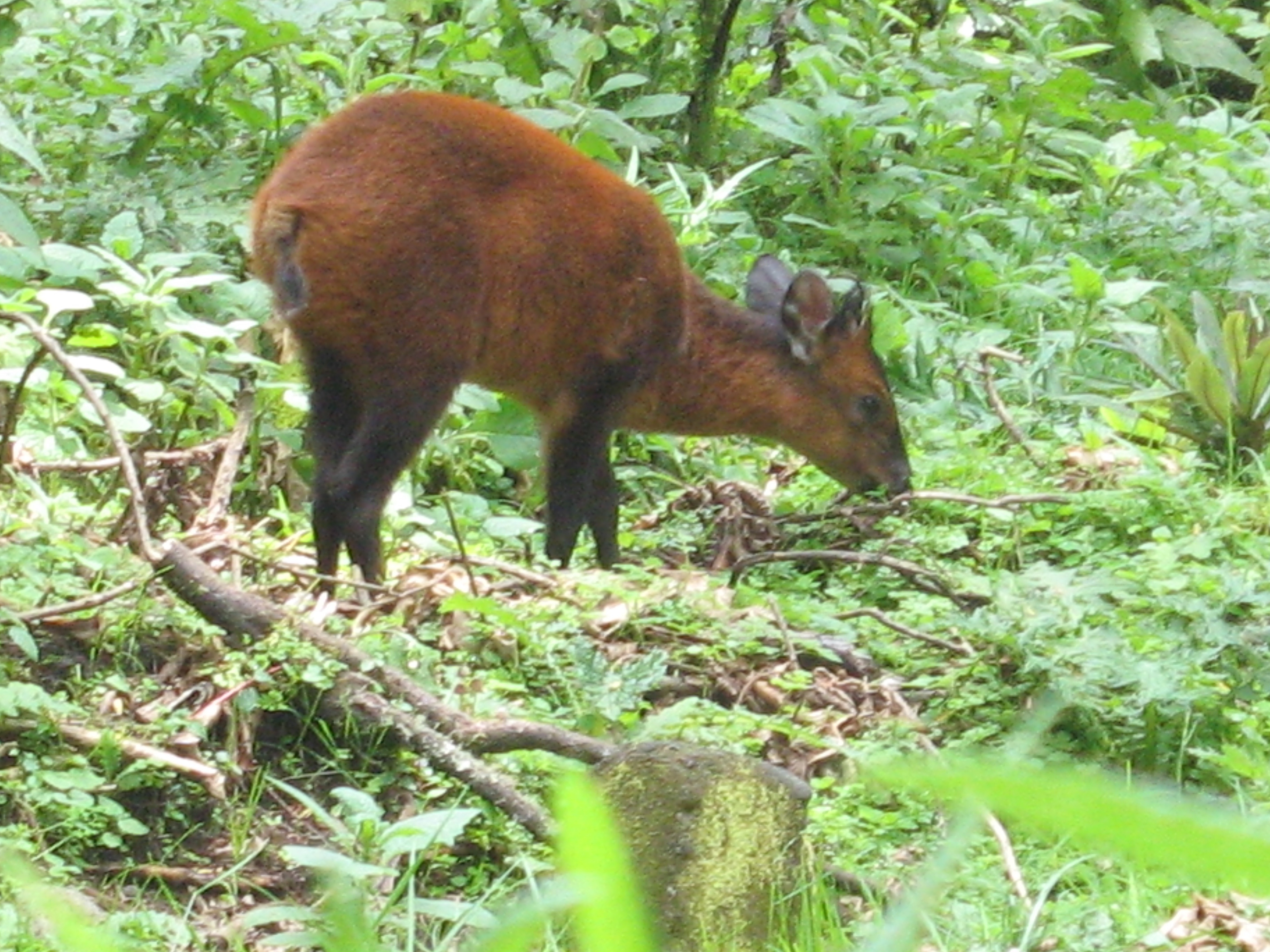 A duiker, a small antelope, wanders out of the forest, Karisoke, Volcanoes NP