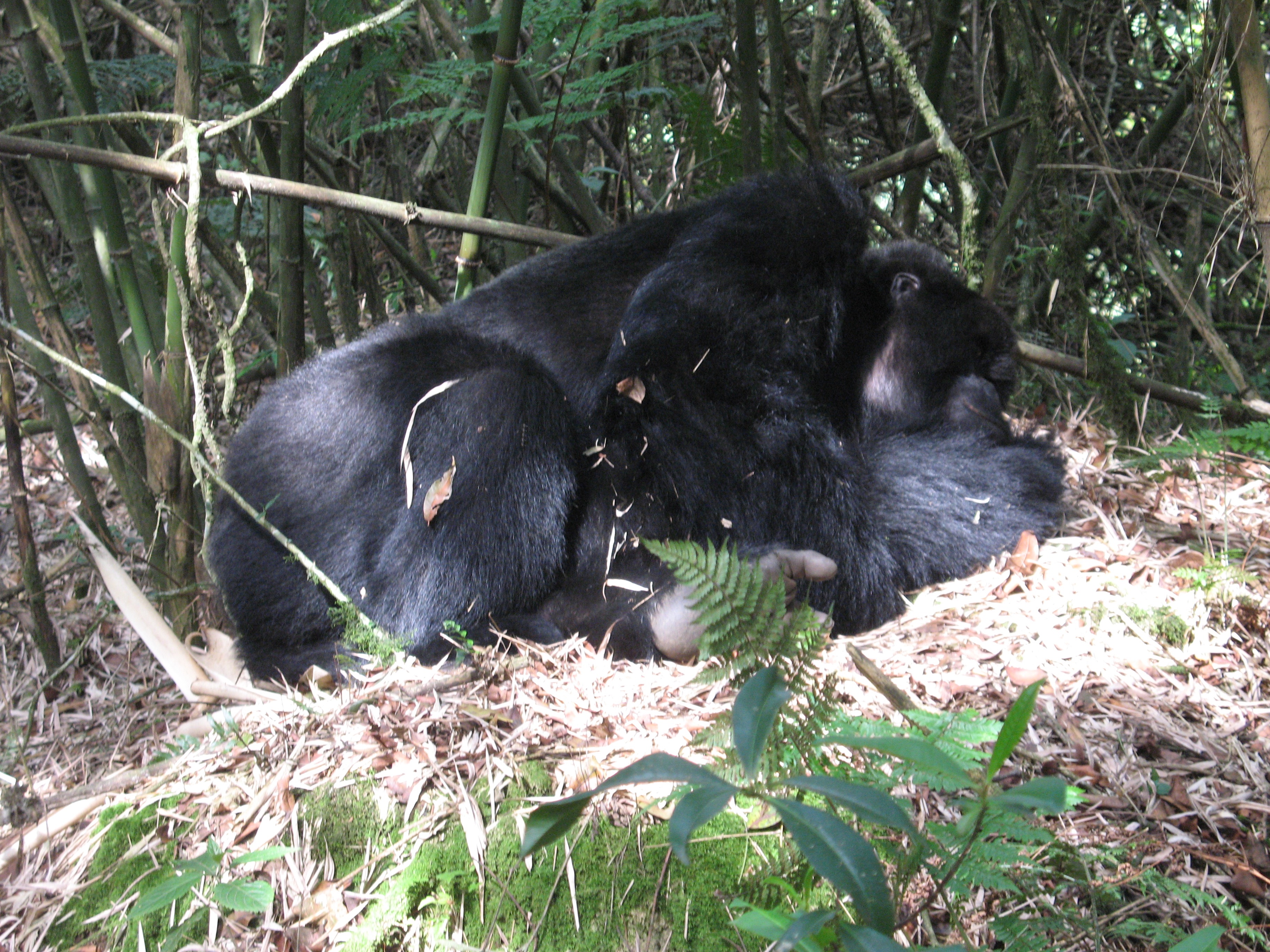 Young male (blackback) resting in nest, Hirwa Group, Volcanoes NP