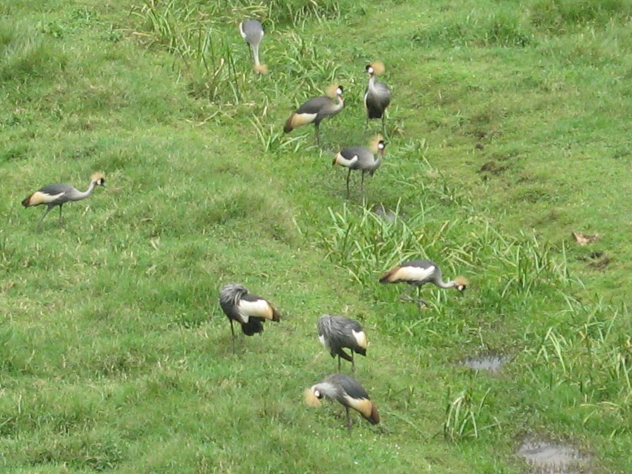 Lucky sighting of endangered grey crowned cranes, national bird of Uganda, road to Lake Bunyonyi