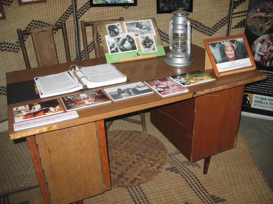 Dian Fossey’s desk, now housed with other artifacts in the Karisoke Research Center in Musanze (Ruhengeri). Like everything else that was once up at her research station, it had to be carried up the mountain by porters and, later, carried back down.