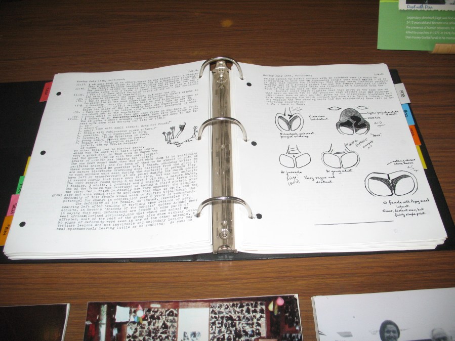 Reproduction of Dian Fossey’s research notes, Karisoke Research Center, Musanze (Ruhengeri)