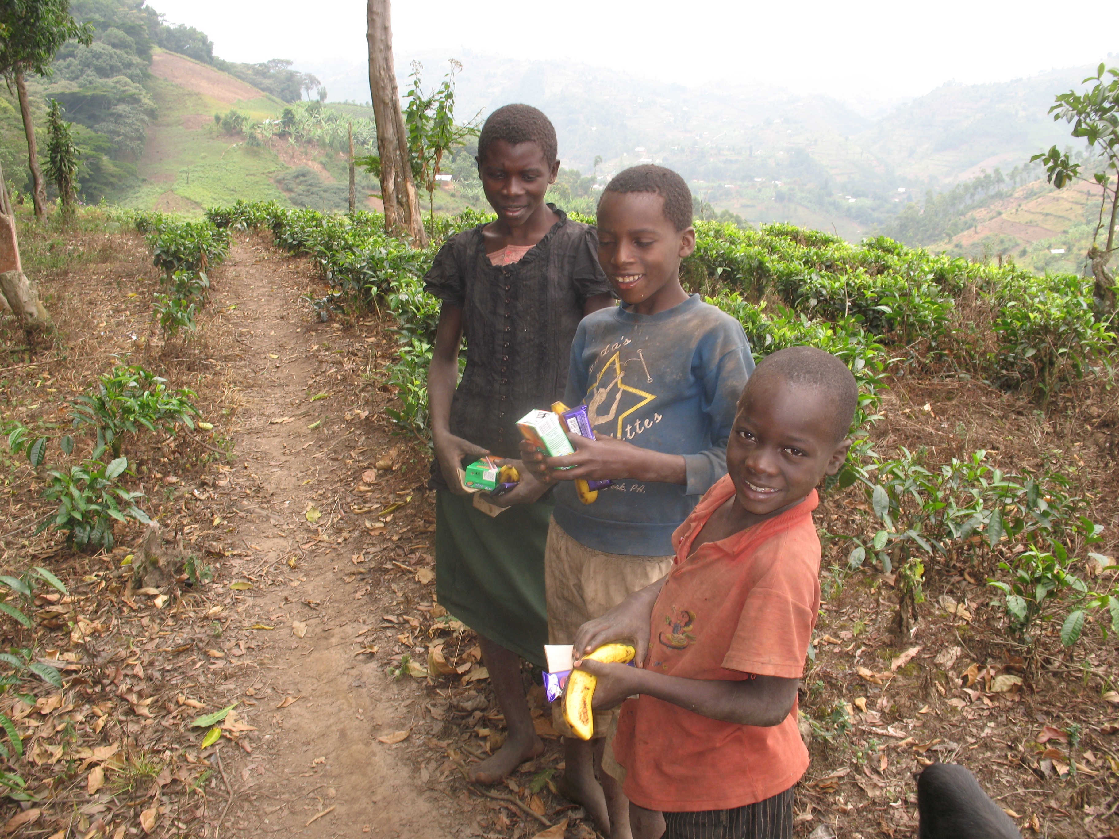 Kids along the trail with food given to them by trekkers, Bwindi Impenetrable NP