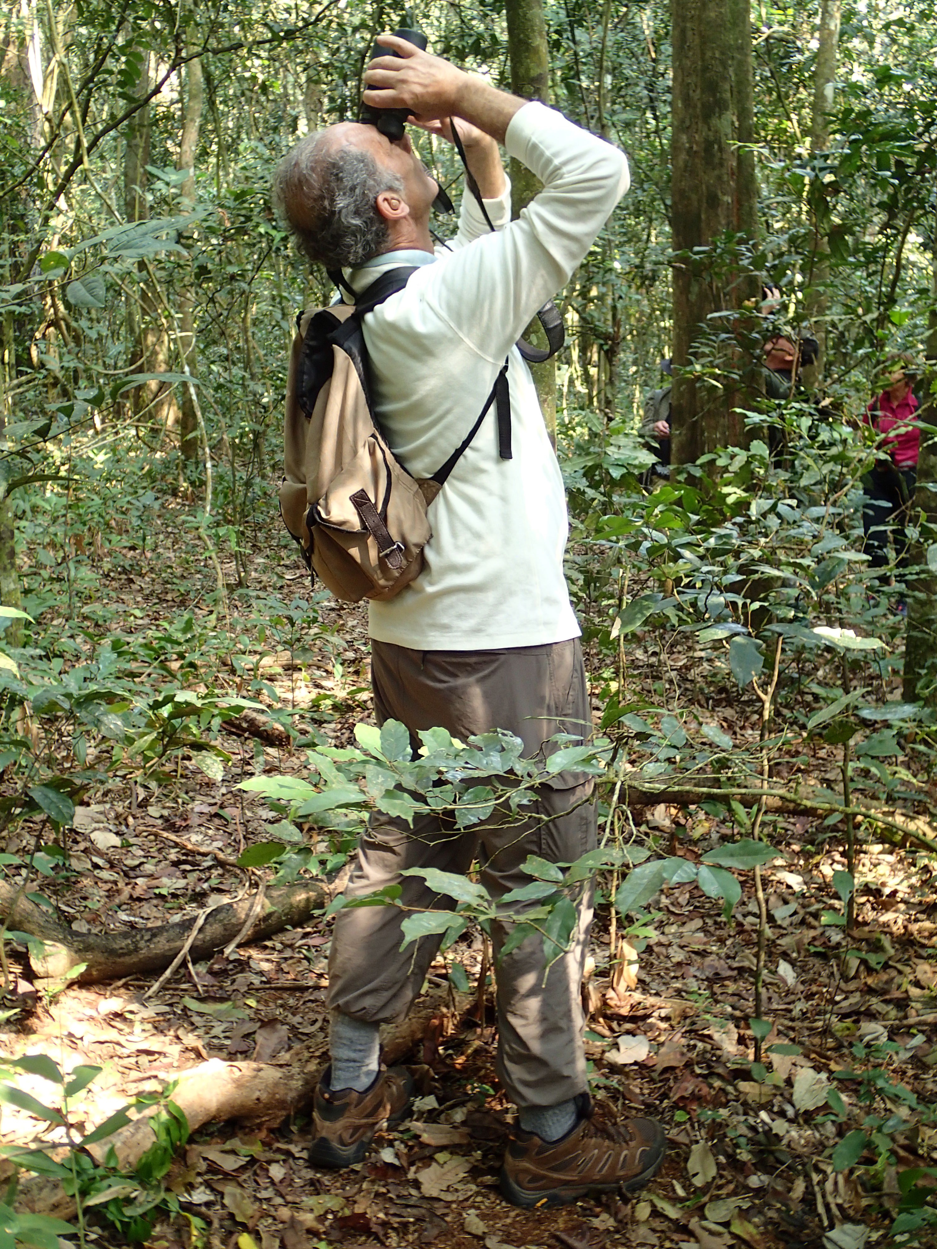 Marc watching chimps and … could that be a potto? Kibale Forest National Park