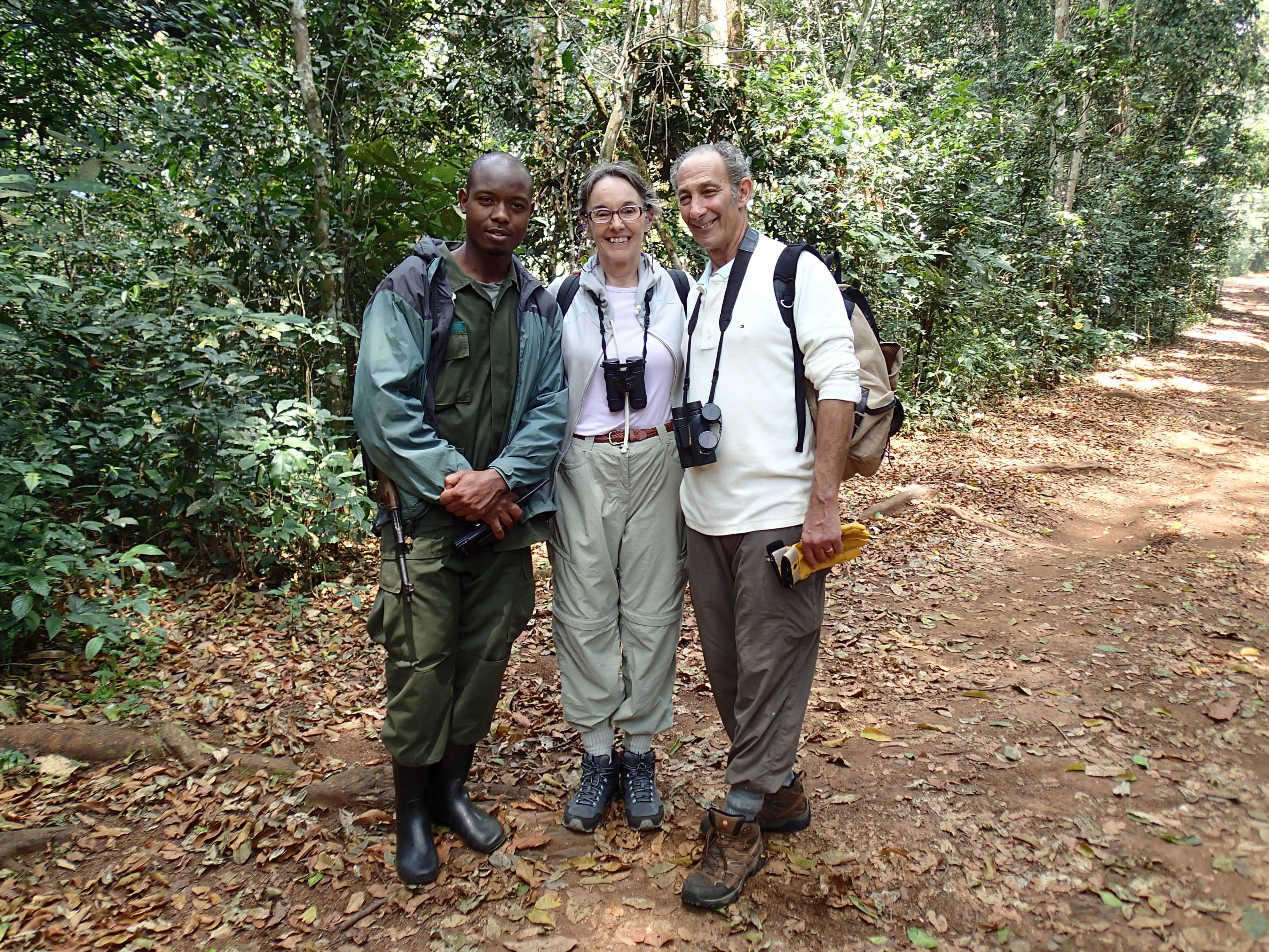 Moses, Gini and Marc at end of chimpanzee trek, Kibale Forest NP