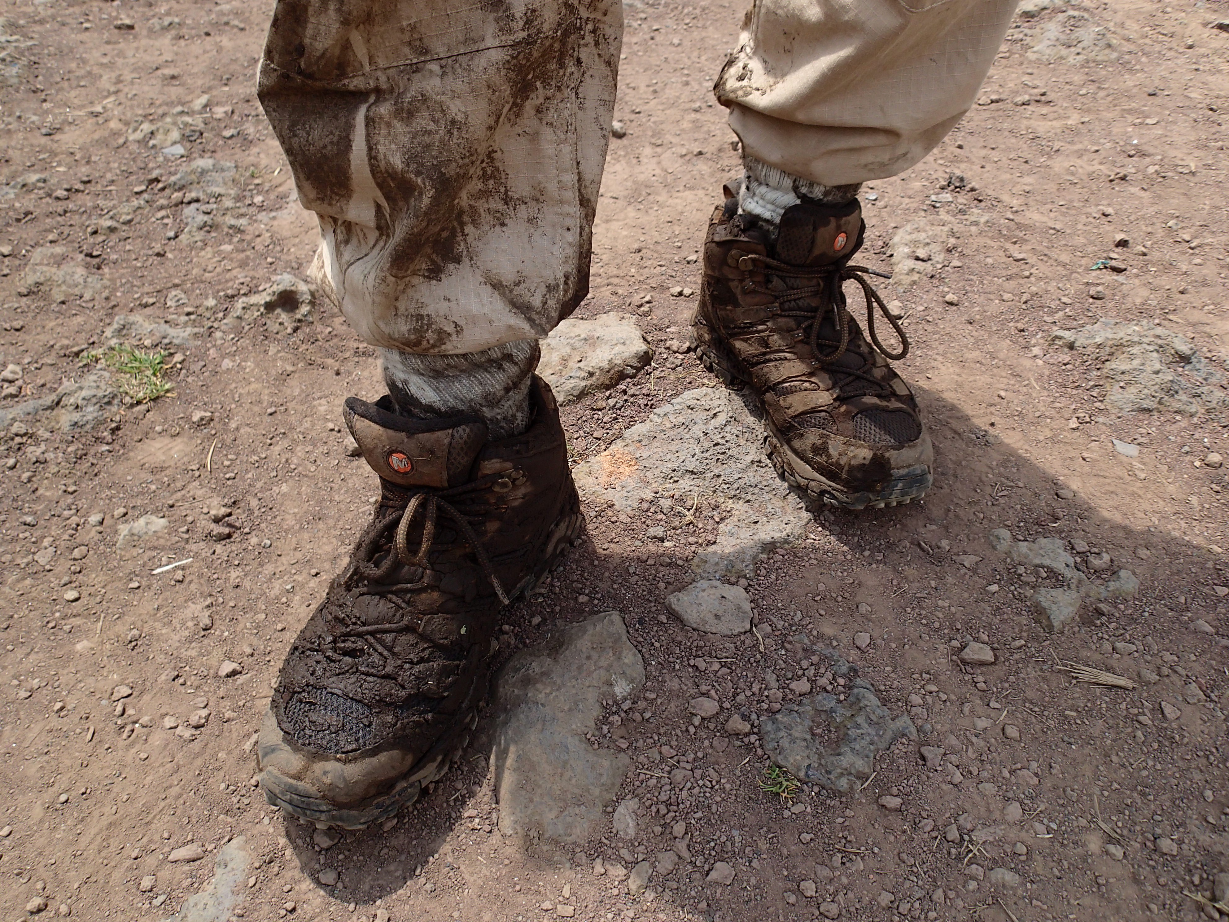 Marc’s pants and boots after Karisoke climb, Bisate