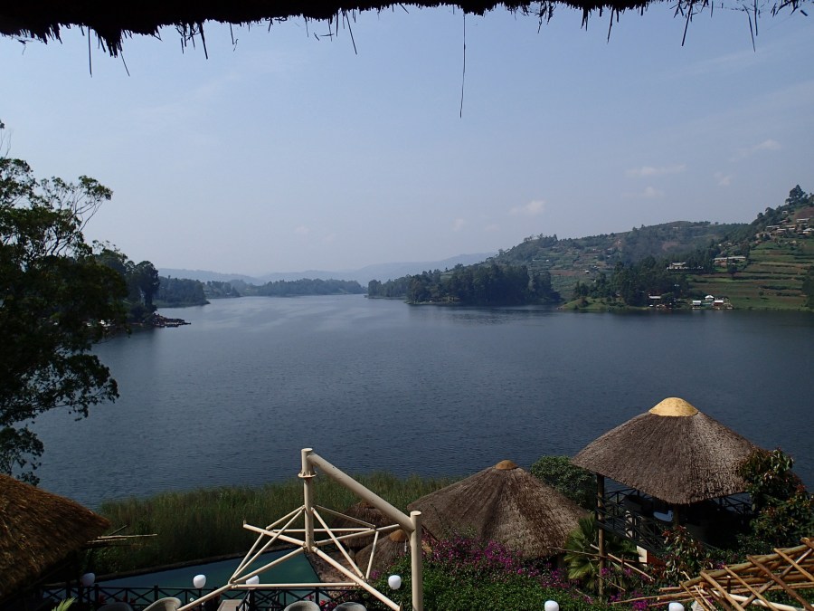 View of Lake Bunyonyi from terrace, Birdnest Resort
