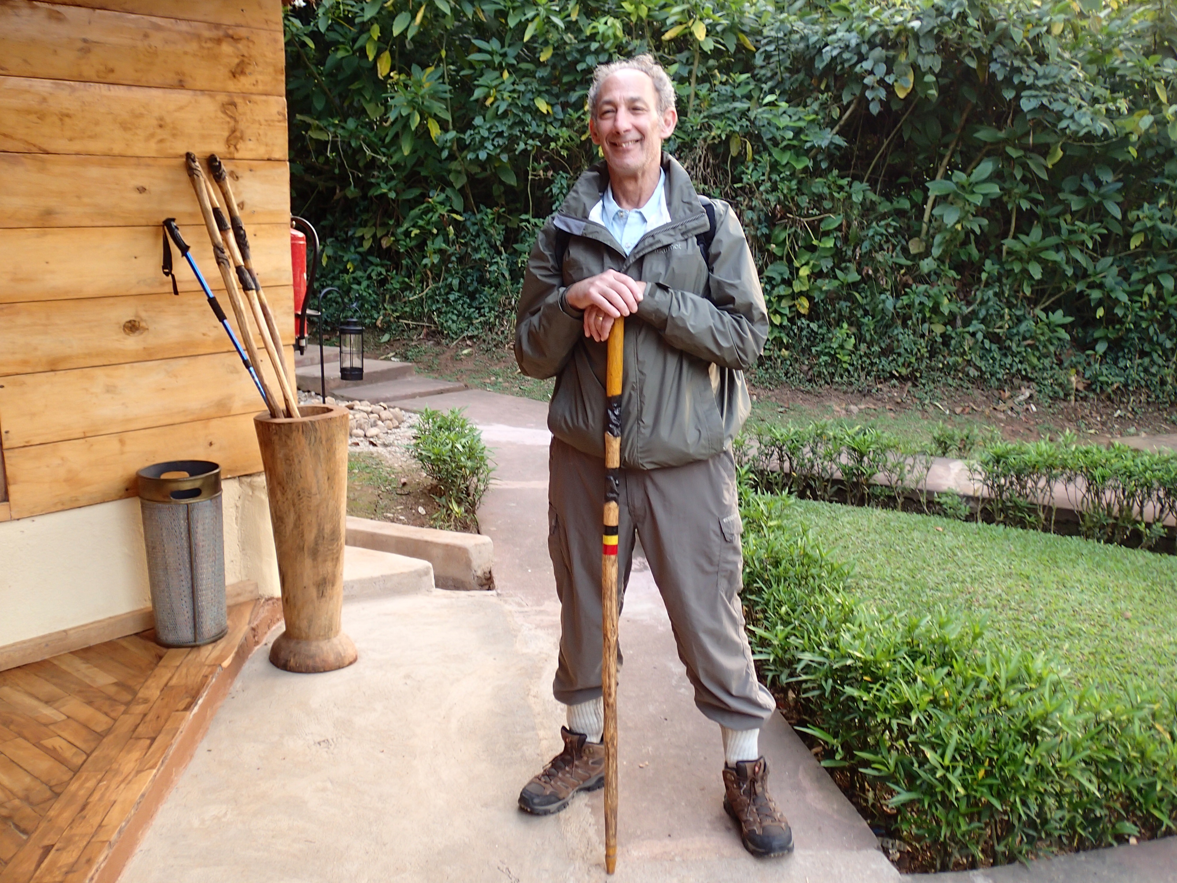 Marc selects his trusty walking stick for his second gorilla trek, Sanctuary Gorilla Forest Camp, Bwindi Impenetrable National Park