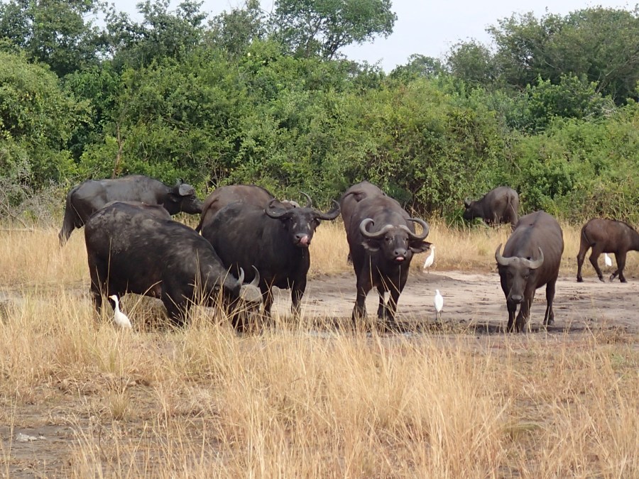 Cape buffalo and cattle egrets, Queen Elizabeth NP