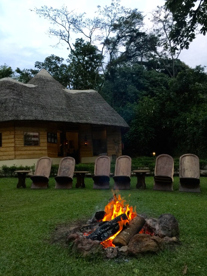 Fire at sunset, Sanctuary Gorilla Forest Camp, Bwindi Impenetrable NP