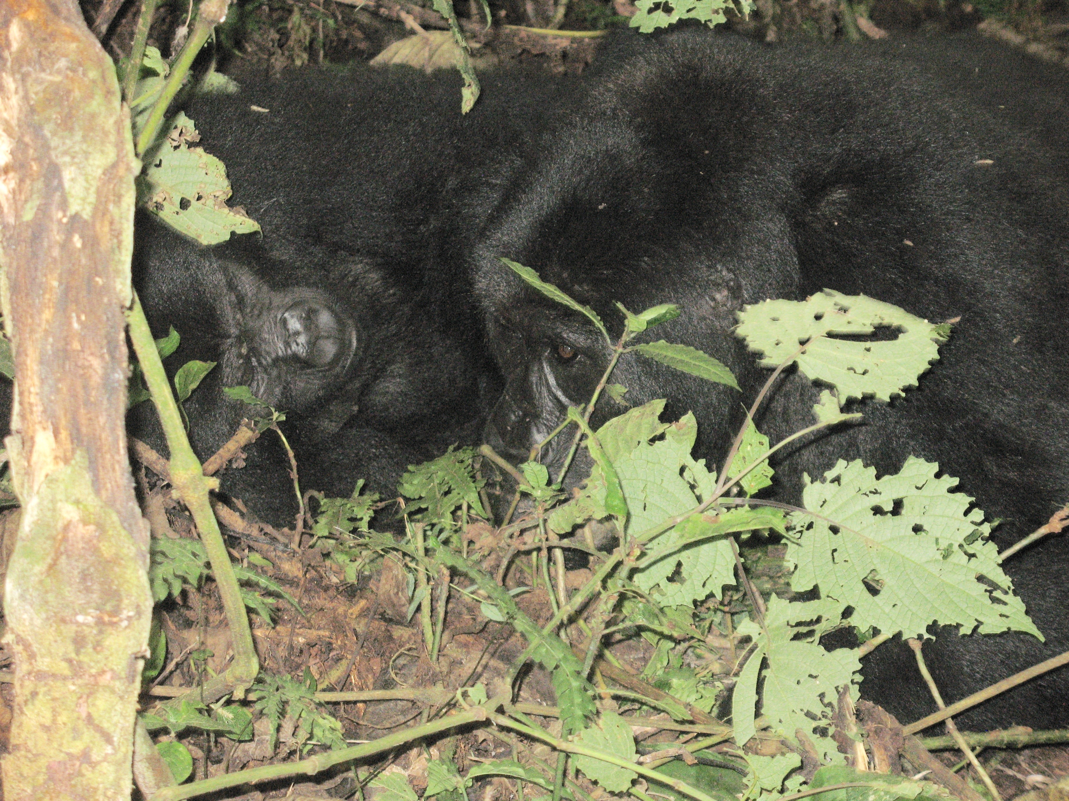 Two gorillas, resting in brush, Habinyanja Group,Bwindi Impenetrable NP