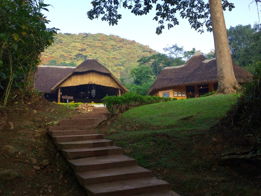 Arriving at Sanctuary Gorilla Forest Camp, a bit of a climb up a slope to a beautiful lodge, Bwindi Impenetrable NP