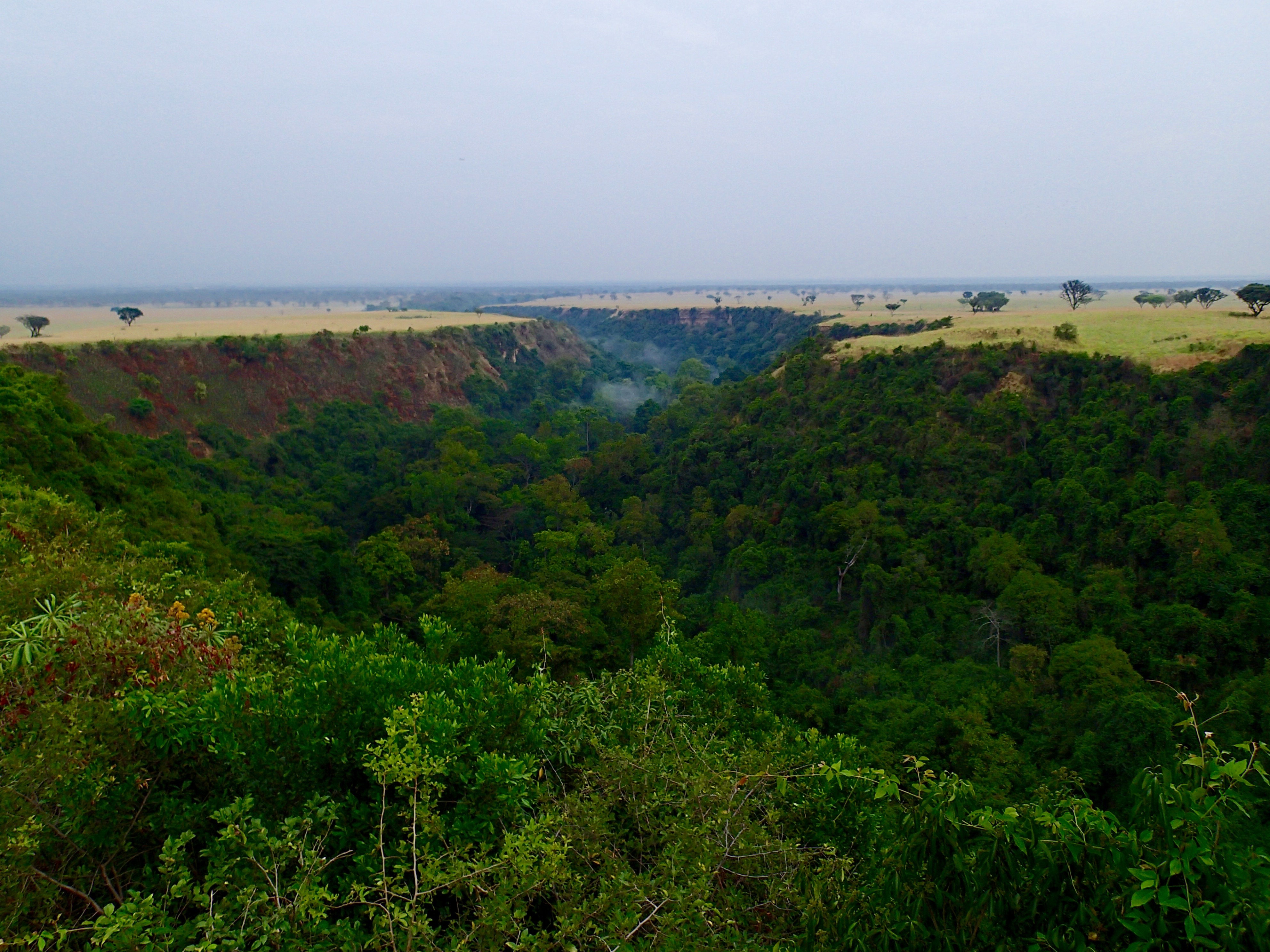 Kyambura Gorge, Queen Elizabeth NP. Stunning Gorge. We were supposed to do a chimp trek down into it, but it looked so steep we decided to skip it and do another game drive instead.