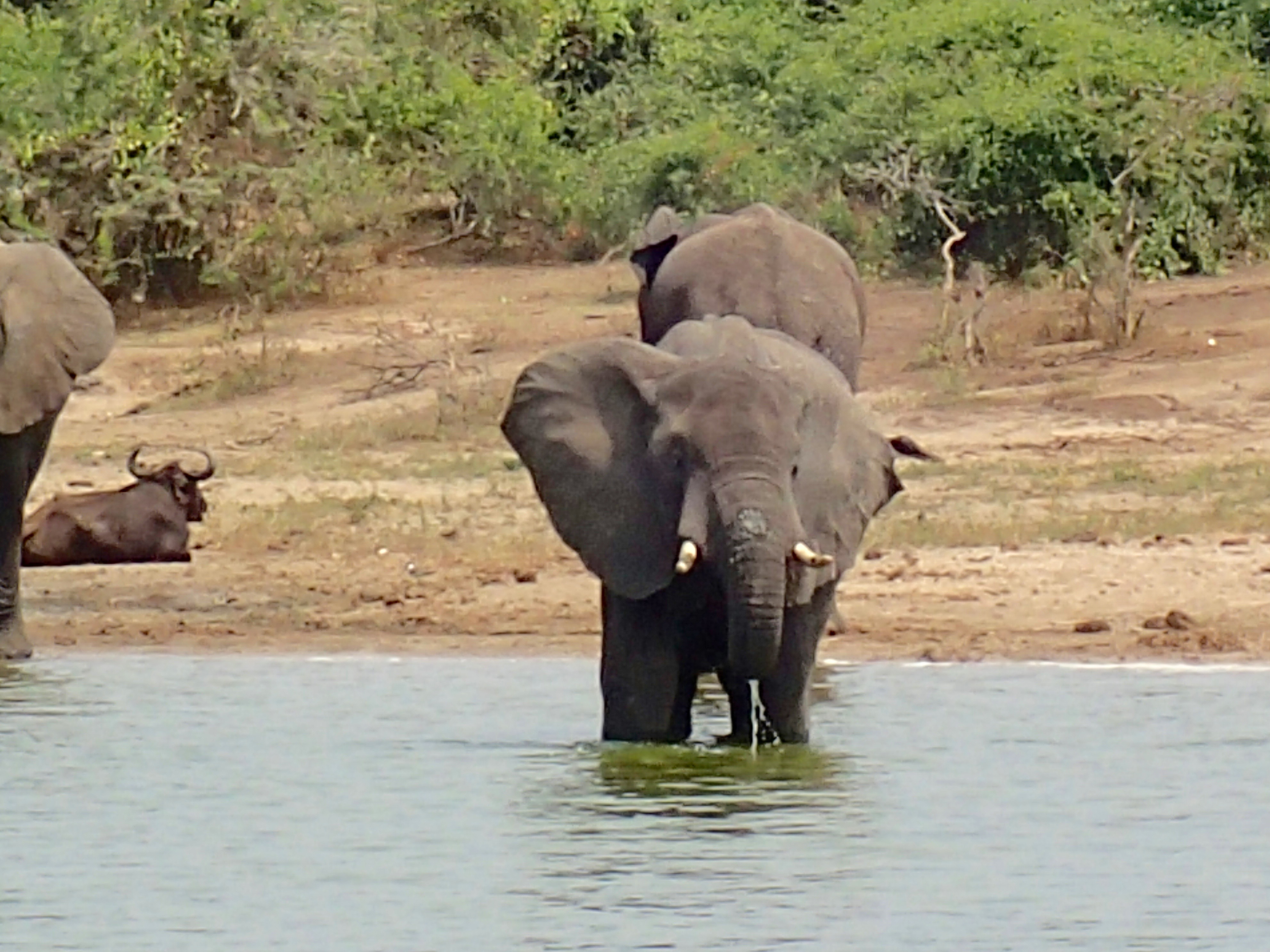 Elephants drinking, Kazinga Channel, Queen Elizabeth NP
