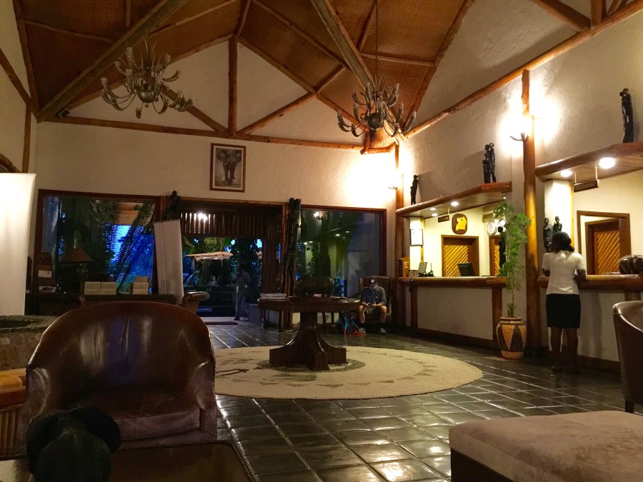 Early morning, lobby of Mweya Safar Lodge, Queen Elizabeth National Park