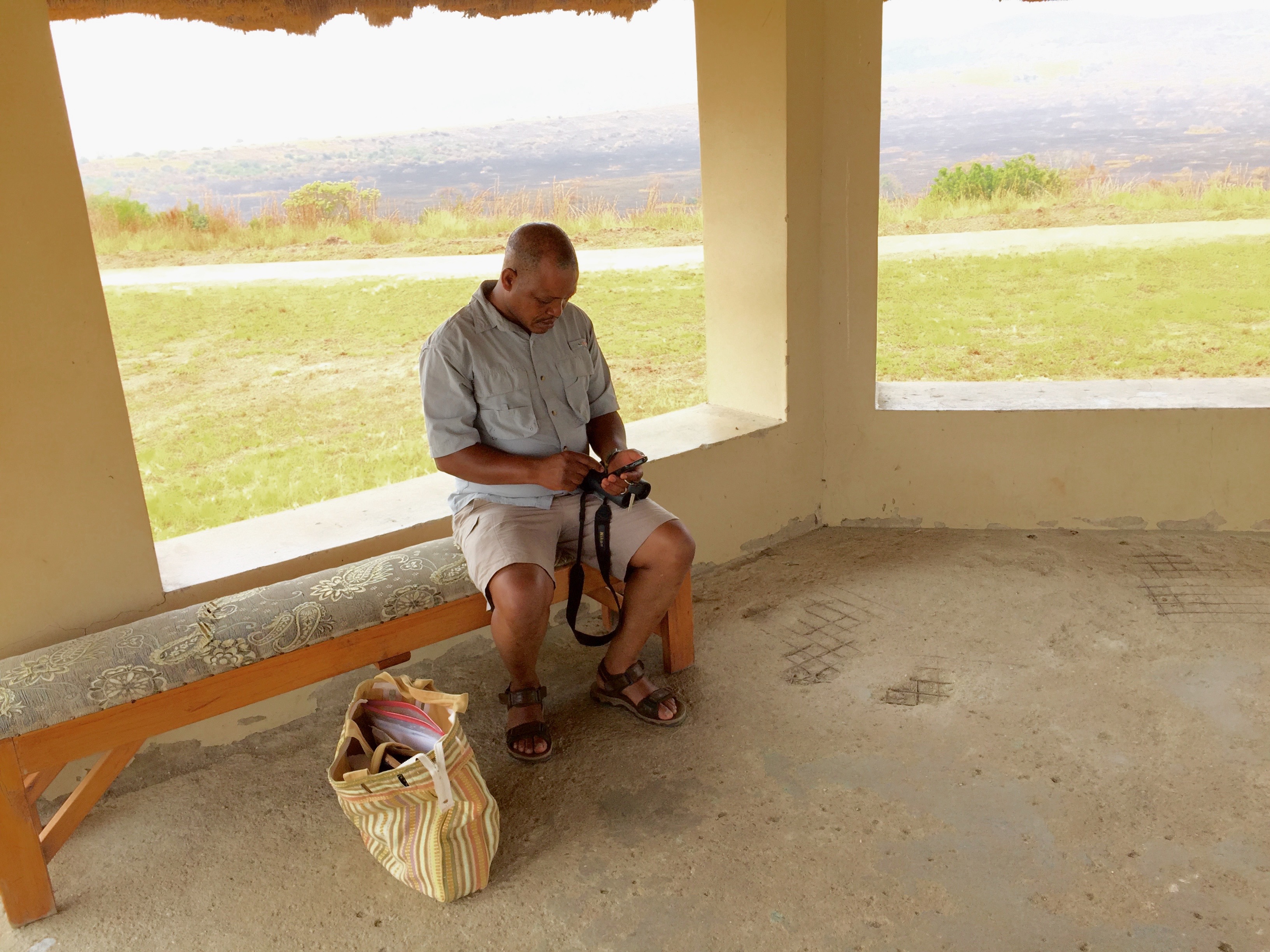 Kenneth checking his phone, Queen’s Pavilion, Queen Elizabeth NP