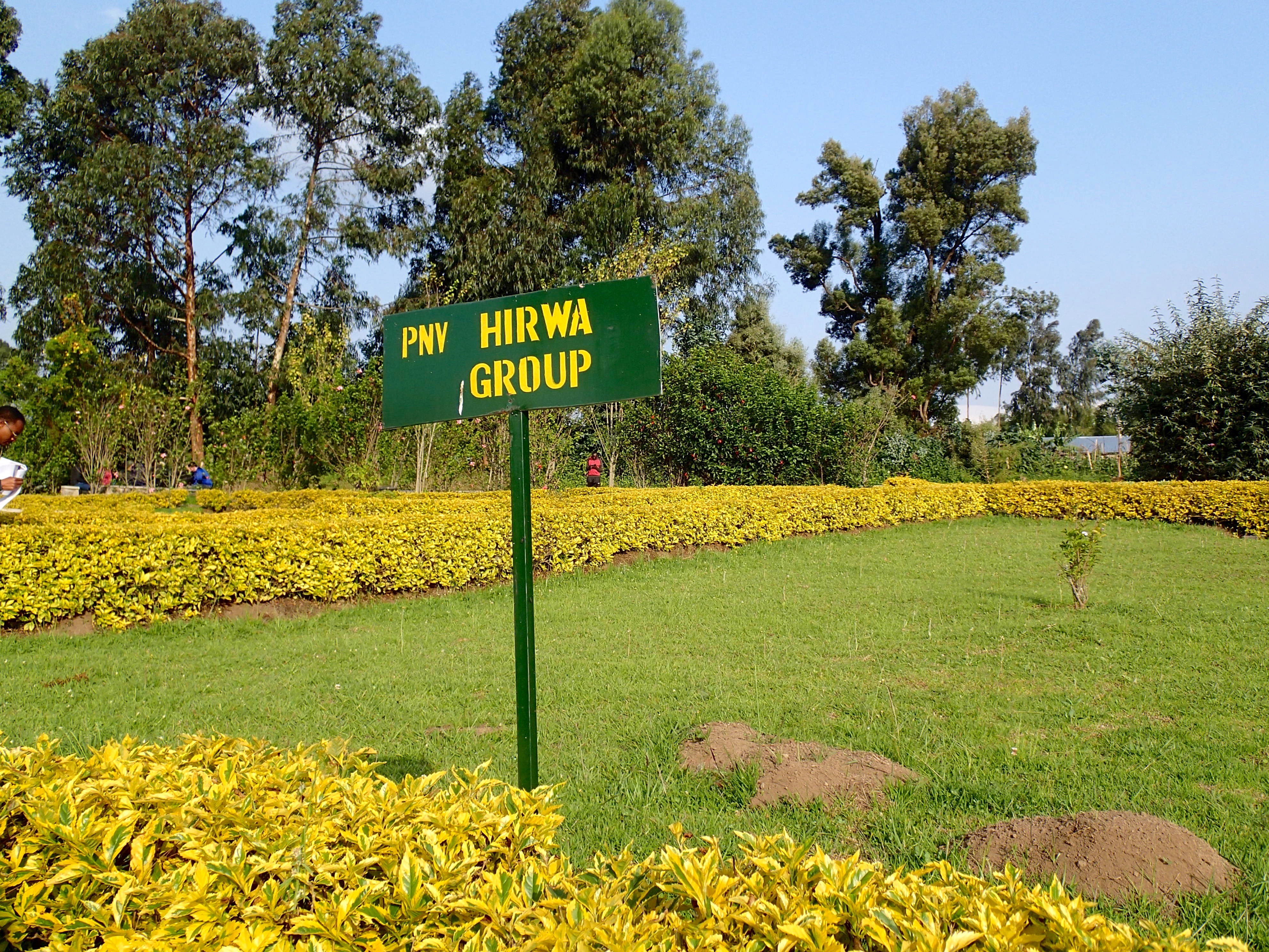 Signs posted near circular seating areas indicated where trekkers assigned to various gorilla families were to gather for their pre-trek orientation. This was our gorilla family. Volcanoes NP headquarters